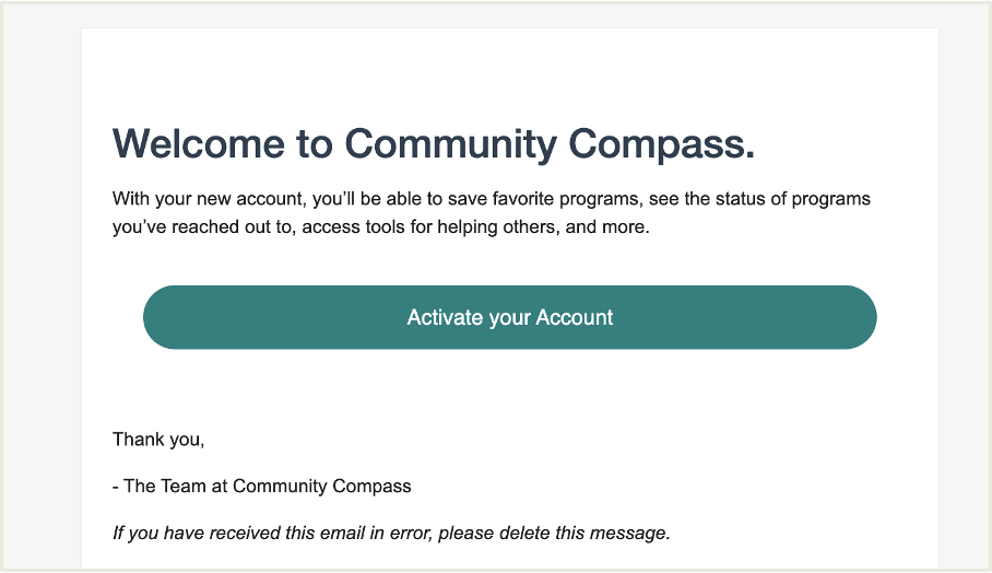 User Account Activation Email