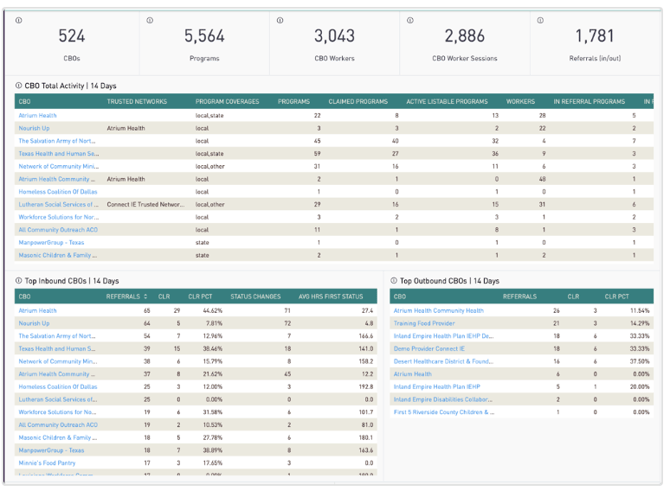 • Track Trends: Monitor the status and referral trends for CBOs in aggregate.