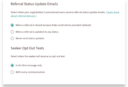 - Change notification settings for when referral status update emails are sent out