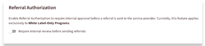 You can implement an authorization workflow for referrals initiated by your navigators. When this feature is enabled, referrals are held for internal review and will only be sent to the provider once a designated team member has approved them.