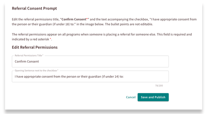- And update the referral consent prompt that shows on live referral forms