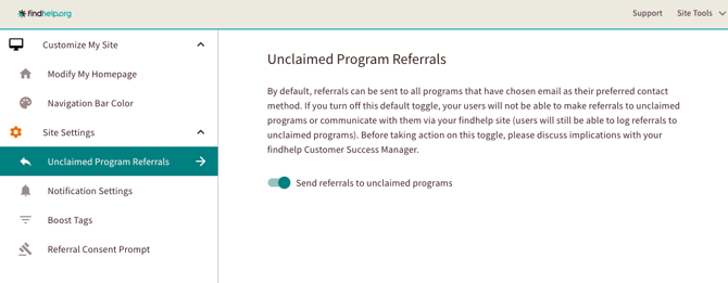 - Change the setting for unclaimed program referrals on your site