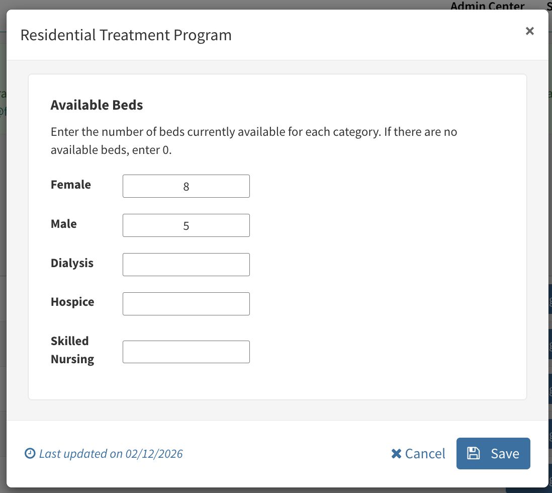 Keeping this information current is essential for managing your workflow. Accurate capacity data deters inappropriate referrals, saving your team from having to deny requests when you are full.