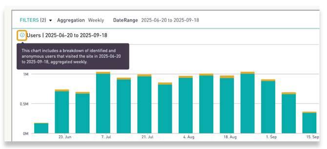 Our dashboards include specific metrics to help you understand how users are interacting with your site. To learn more about any of these metrics, you can find definitions and details on the individual charts and tables within the analytics suite or in our Knowledge Base.