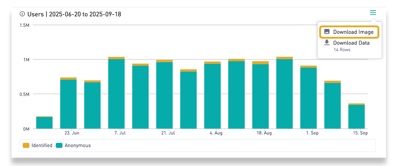 To download a graph, simply click the three horizontal lines located next to the graph. From the menu that appears, select Download image.