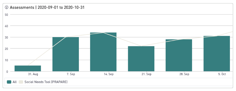 - What needs were identified: Track trends in needs identified through Assessments, the percentage of people with identified needs, and the number of “open” needs based on unresolved Goals.