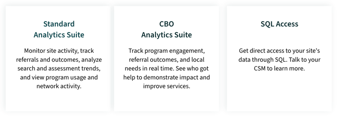The Findhelp platform offers various analytics and reporting tools. To access any reports, users must be logged in.
