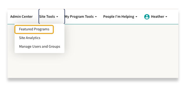 Once your Customer Success Manager has finished setting up your organization's feature labels, your designated Site Administrators can use the Featured Program tool to apply the labels to programs.