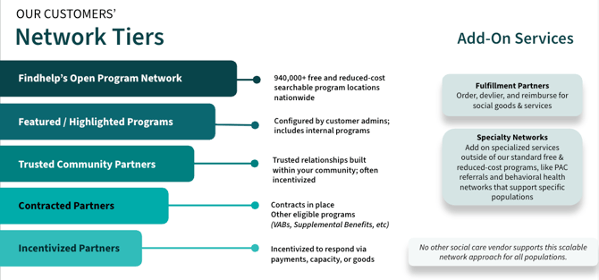 Your have done the groundwork of mapping your organization’s social care goals and aligning them with Findhelp community engagement goals. Additionally, you have reviewed the learning opportunities that will equip you with information about how the site works for your staff and for CBOs. Now its time to take a look at how to select partners based on your goals.