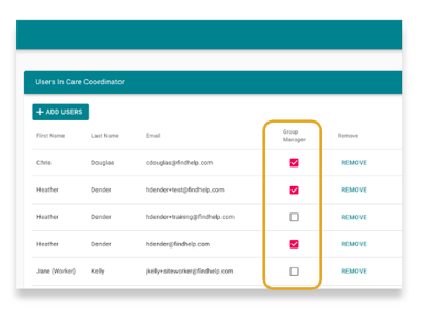 On the Edit Group page, you'll see every user in that group. To remove someone, simply click Remove next to their name. This action will also remove their access to any shared folders, notes, or seeker profiles if Team Navigation is on.