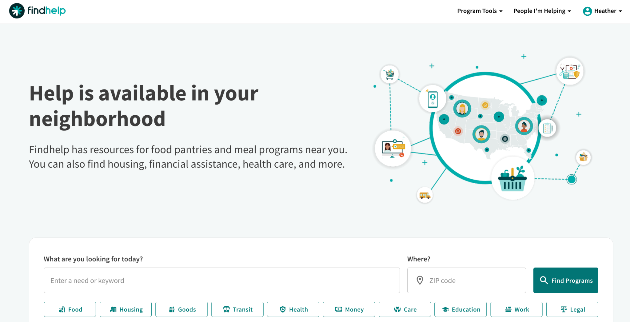 The keyword search bar is perfect if you know exactly what you're looking for, like a specific program name or type of help. Just type in your keywords. You can also change the search area. Simply type a different zip code into the search bar and hit Enter. The results will automatically update to show programs in that new location.