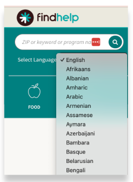 You can easily translate the Findhelp website into the language of the person you're helping.