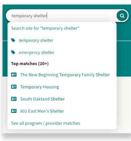 Tags: At the top, you'll see tags. Think of these as labels that help organize programs. Every program on Findhelp has tags that have been added to it. If you click on a tag that matches what you've typed, you'll see all programs linked to that specific tag.