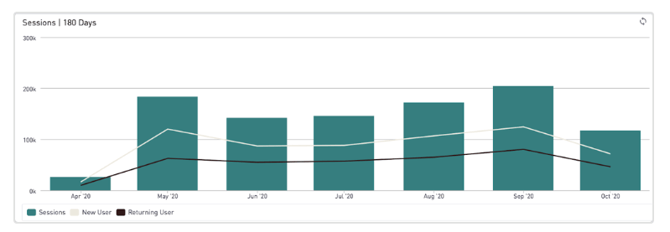- Track trends in users, sessions, searches, interactions, connections, and referrals.