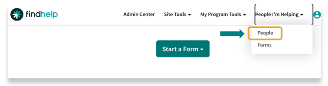 When you're signed into the site and have made a referral or submitted an assessment for a seeker, you can access their information by clicking "People I'm Helping" in the top menu, then selecting "People."
