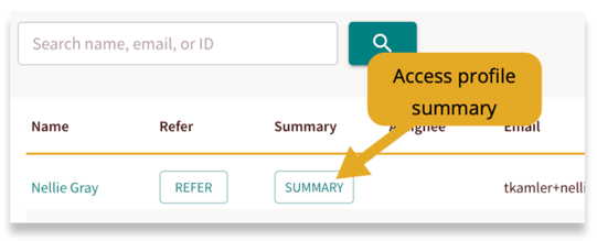 You can quickly view a summary of a Seeker Profile directly from the People I'm Helping dashboard. Simply click the Summary button next to the person's name.