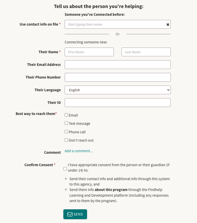 With a live referral, when you click Connect, you go directly to the referral form. The information in this form will go directly to the program provider.