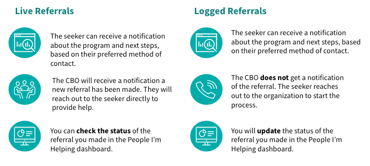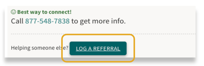 After clicking Connect, you will see the program’s specific next steps. Share these instructions with the seeker, then select Log a Referral to complete the form.
