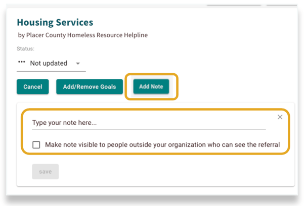 You can add a note directly to a referral within a seeker's profile by clicking Add Note.