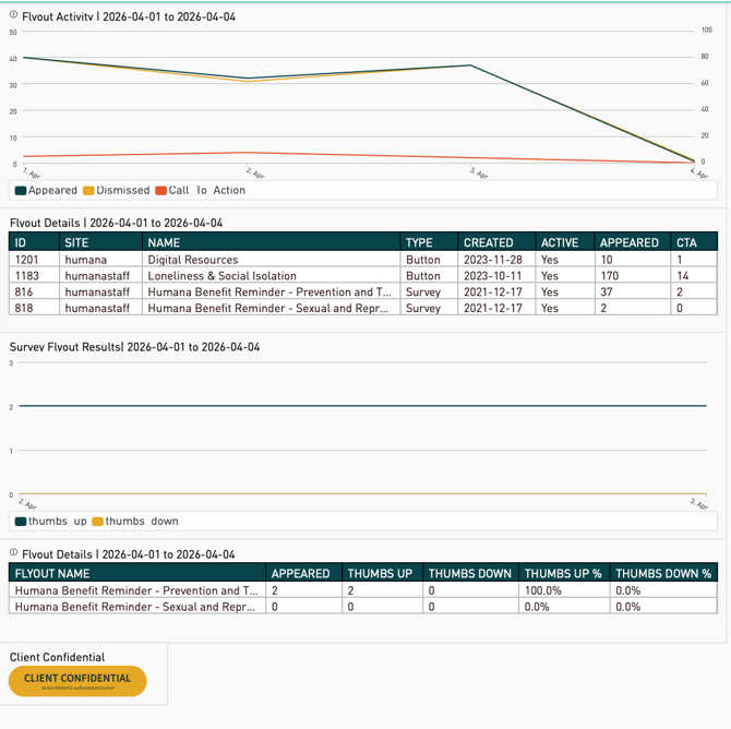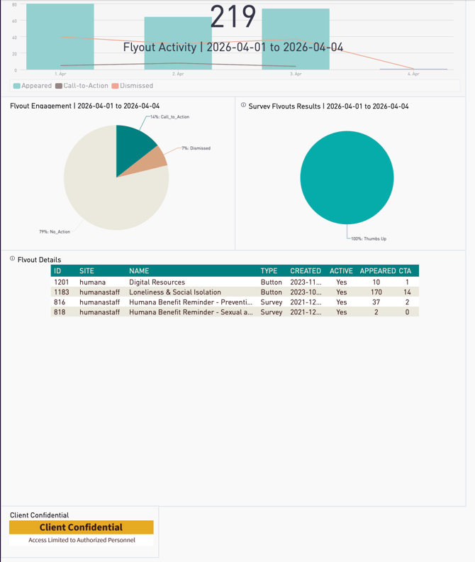The Flyout Dashboard has been refreshed to improve clarity, usability, and insight into engagement trends.