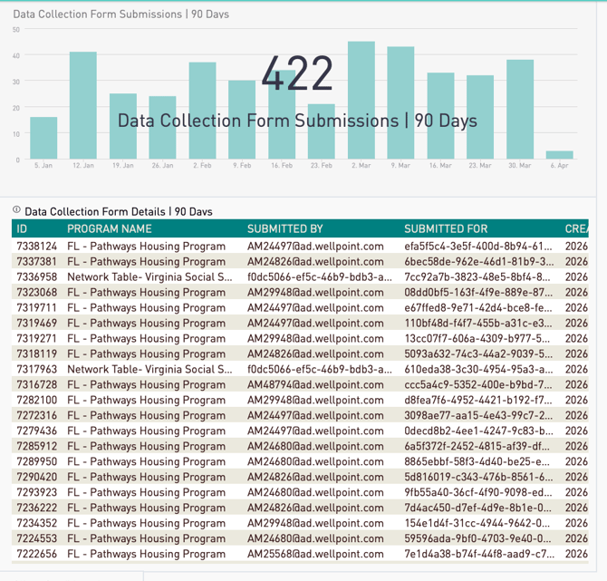 These changes provide a cleaner, more focused view of data collection trends and submission activity.