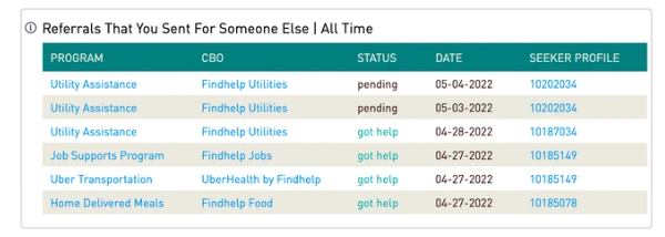 Streamline Follow-ups: From the Seeker Profile, you can update referral statuses or reach out regarding any outstanding requests.